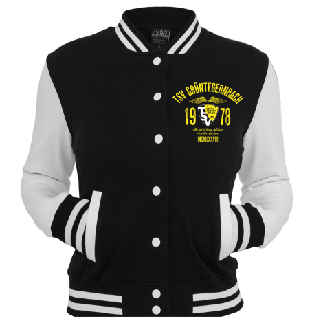 Mit der Collegejacke im trendigen Look ist nicht nur auf dem Unigelände Aufmerksamkeit garantiert. Die Optik der stylischen Jacke ist auffällig durch den matten Korpus und die langen Kontrastärmel. Auf der Vorderseite befinden sich attraktive Frontprints und zwei Leistentaschen. Der Collegekragen und die Ärmelabschlüsse sind mit Rippstrickbündchen versehen. Mit hipper Jeans und Oldschool-Sneakern entsteht ein fabelhaftes Alltagsoutfit. Must-have für den sportiv-lässigen Trendlook.